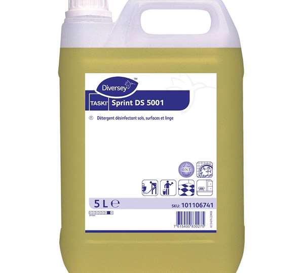 Détergent désinfectant peu moussant pour le nettoyage et la désinfection des sols et surfaces.