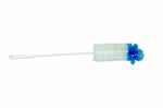 Goupillon en nylon et bout coquille. Poignée polypropylène blanc à trou de suspension. Fil torsadé plastifié.