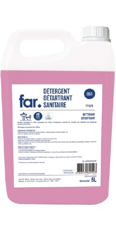 Nettoyant détartrant parfumé, idéal pour l’entretien des surfaces sanitaires : lavabos, baignoires, surfaces carrelées, WC. Laisse une agréable odeur après nettoyage