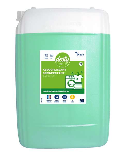 Assouplissant linge concentré désinfectantConcentréParfuméNeutralise l’alcalinité de la lessiveTP2 : Désinfectants et produits non destinés à l’application directe sur des êtres humains ou des animaux.