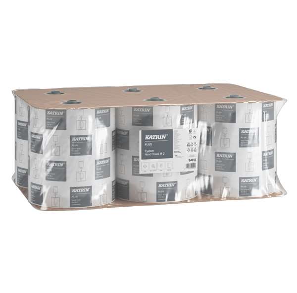Essuie-mains Katrin System, 2 plis pure pâte, 180 mètres par rouleau, colis de 6 rouleaux, format 21x25,5Compatible avec: 90045, 82094, 82070, 84753, 84739Katrin Plus System Towel M2